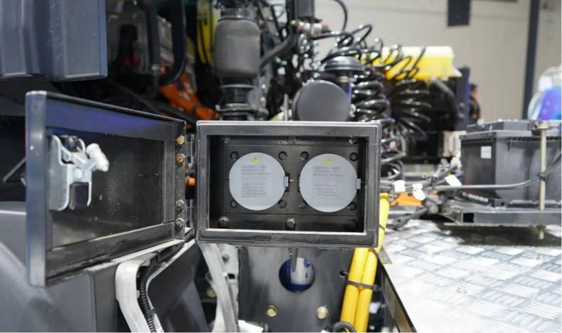 补能方面,该车支持双枪900A大电流充电,20%-80%电量补能时间不到40分钟。可以极速补能,提升出勤效率,司机可在休息或装卸货间隙快速补电,极大减少停车时间,实现高效运营。