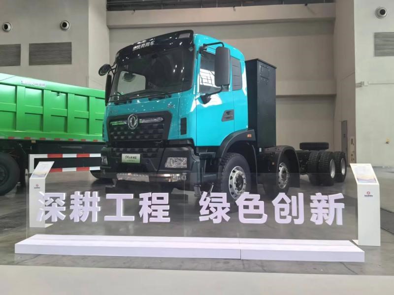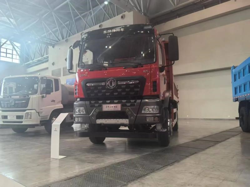 除上述新能源产品外,年会现场东风商用车亦展出了两款传统能源自卸车。东风天龙KC王者自卸车聚焦高原渣土、砂石料重载场景,搭载东康600马力发动机,最大扭矩2750牛米,匹配法士特13挡变速箱与汉德桥,强悍配置适配极端工况重载需求。