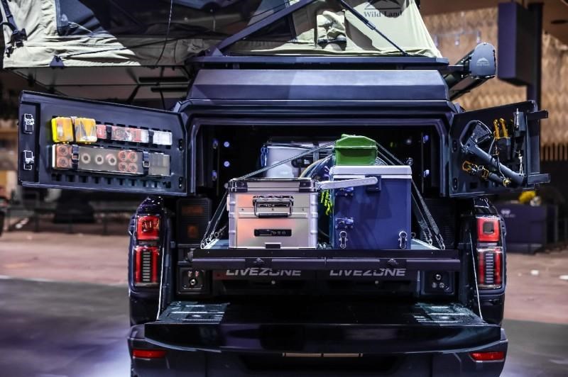 在众多展车中,山海炮Hi4-T钓鱼共创版是深度场景化定制改装标杆。车型由长城炮联合览众房车与“中国钓王”天元邓刚深度共创,定制改装套件同时适配山海炮Hi4-T皮卡及旅居车型,一站式覆盖钓鱼玩家出行、装载、户外用电及露营休憩等全维需求。