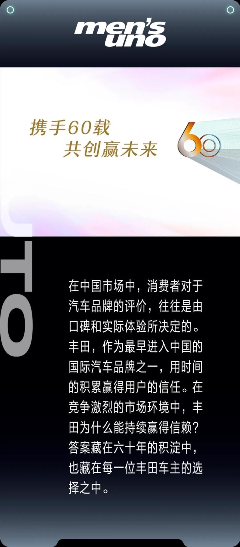 丰田在中国的六十年发展历程,是技术进步与用户信赖不断积累的过程。在竞争激烈的市场环境中,丰田用技术创新和服务体系的不断完善,为用户提供了切实的幸福体验,稳扎稳打地构建起品牌价值。在未来智能化与新能源的浪潮中,丰田也将坚持多路径战略,以创新技术为用户提供更丰富的出行选择。我们相信,无论时代如何变迁,丰田都将与每一位车主共创幸福汽车生活,为中国市场书写更多值得信赖的篇章。
