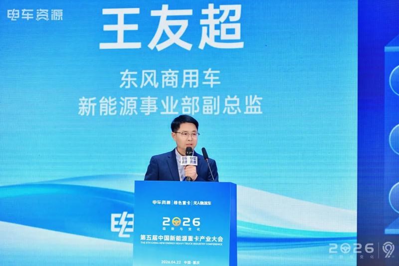 2026年4月21日至23日,以“趋势与变化”为主题的第九届中国新能源商用车产业大会在重庆悦来国际会议中心盛大召开。作为行业风向标,本次大会吸引了来自整车制造、核心零部件、补能生态、市场运营及行业机构等全产业链的千余名精英代表齐聚一堂,共探市场驱动新阶段的破局之道。东风商用车新能源事业部副总监王友超代表公司出席盛会,并发表重要演讲。